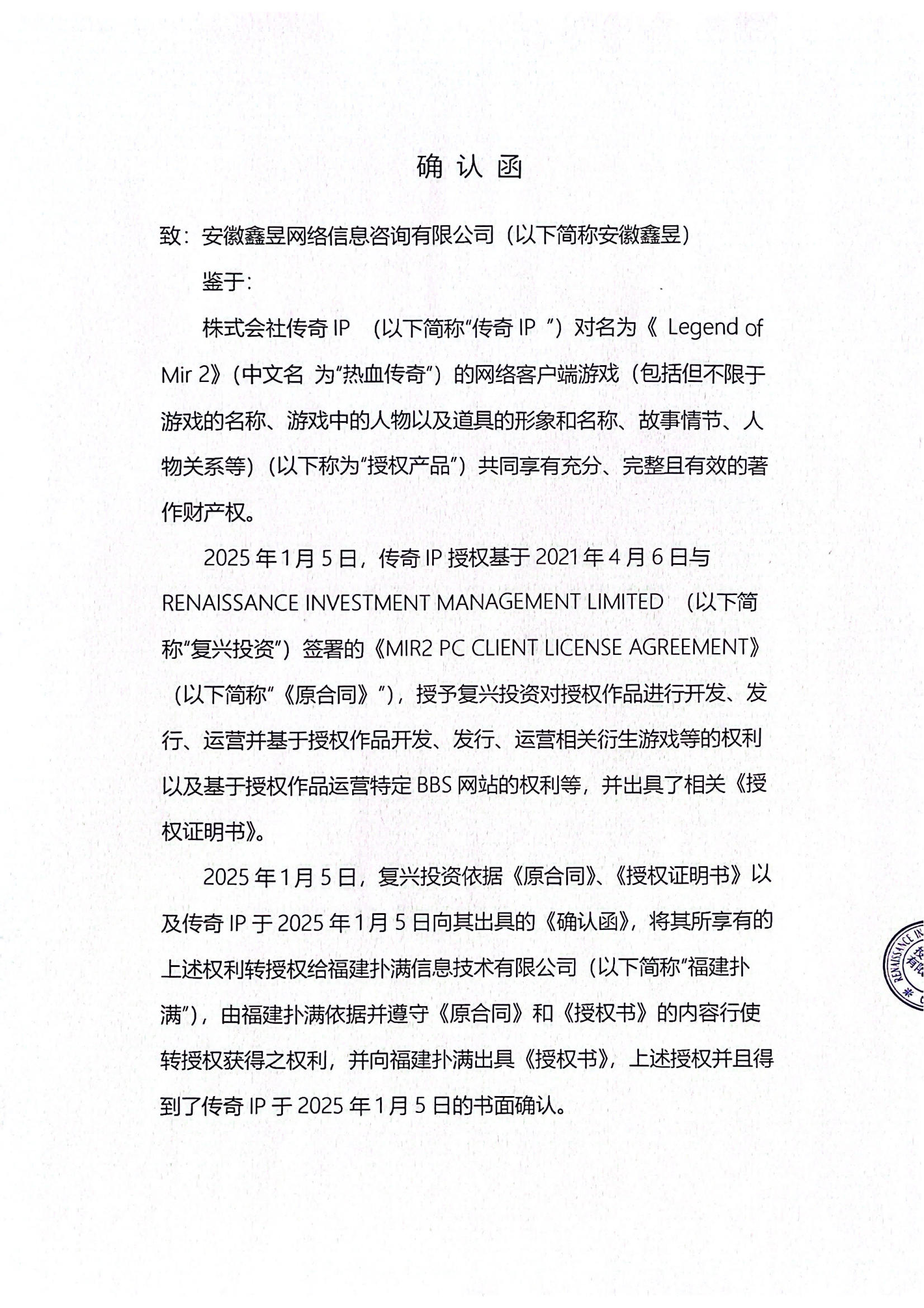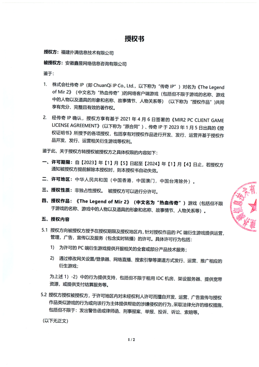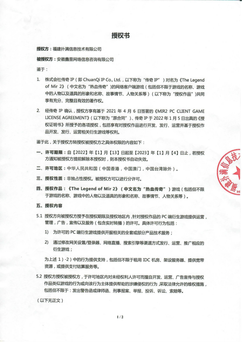 關(guān)于對(duì)《The Legend of Mir 2》(熱血傳奇) 衍生品游戲直播的嚴(yán)正聲明